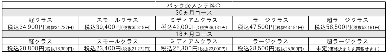 ☆軽自動車(税込)・・・10,010円